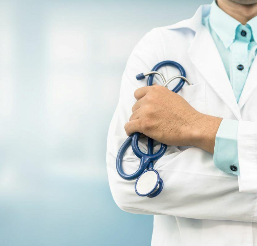 Врач обследует пациента. Собирает анамнез и диагностические манипуляции